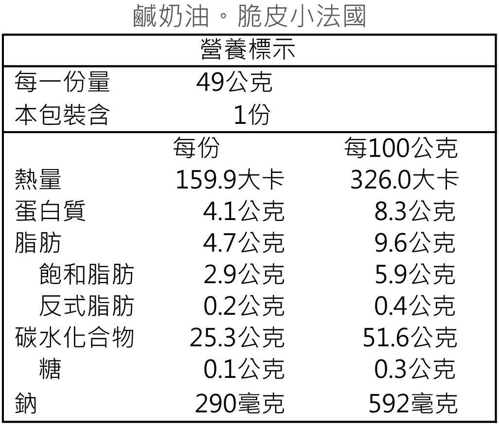 採用老麵發酵,灰份蛋白含量較高的麵粉,表面塗抹奶油,經過烘烤後鹹香奶油與小麥香味融合。
